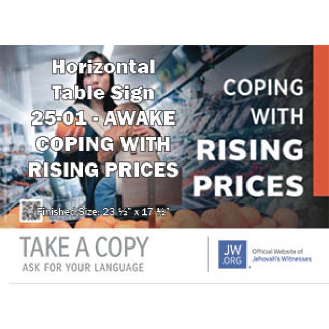 Horizontal Public Witnessing Table Signs - (2025 Edition 1 - Awake - Coping With Rising Prices)